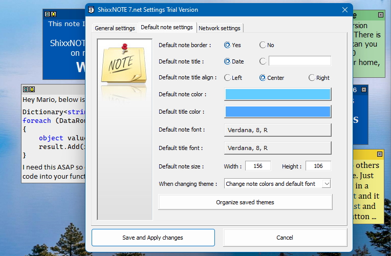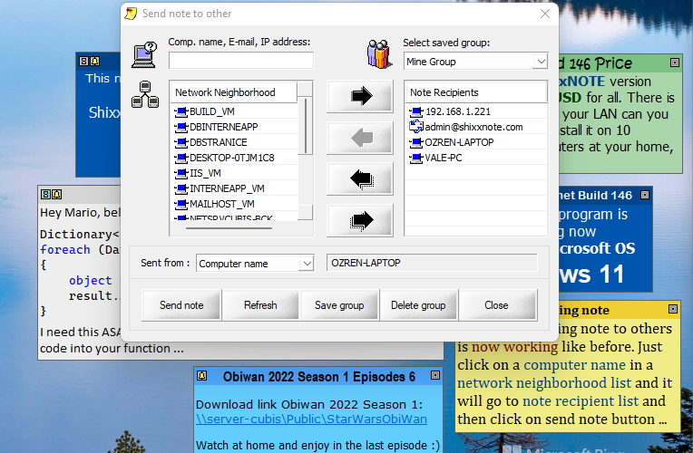 ShixxNOTE 7.net using note options and Send notes to others dialog 📨